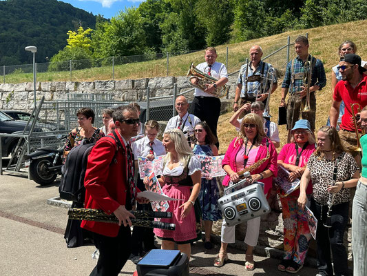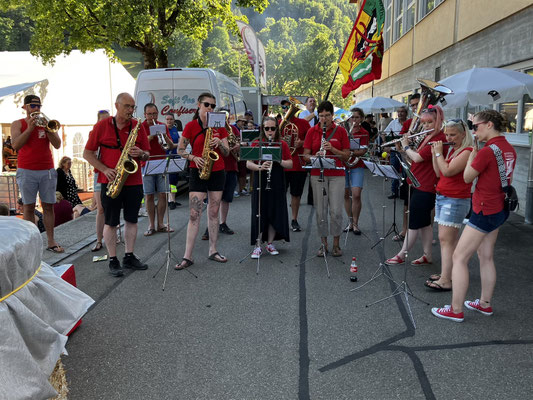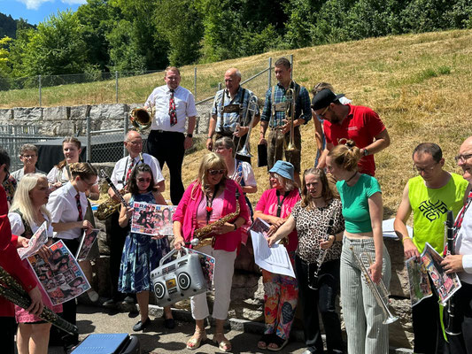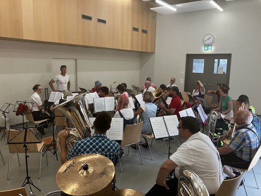 Wir spielen ein Medley aus 90er-Hits und Polkas, von unserem Dirigenten, Mario Franke, selber zusammengestellt!