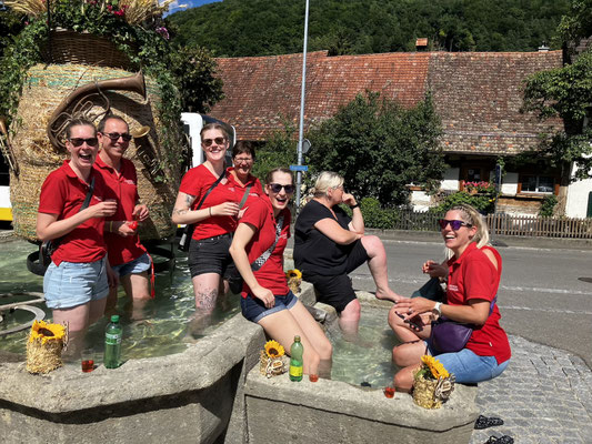 im Dorfbrunnen ein. Auch ein spontanes Ständchen darf nicht fehlen.